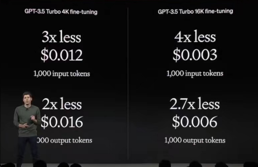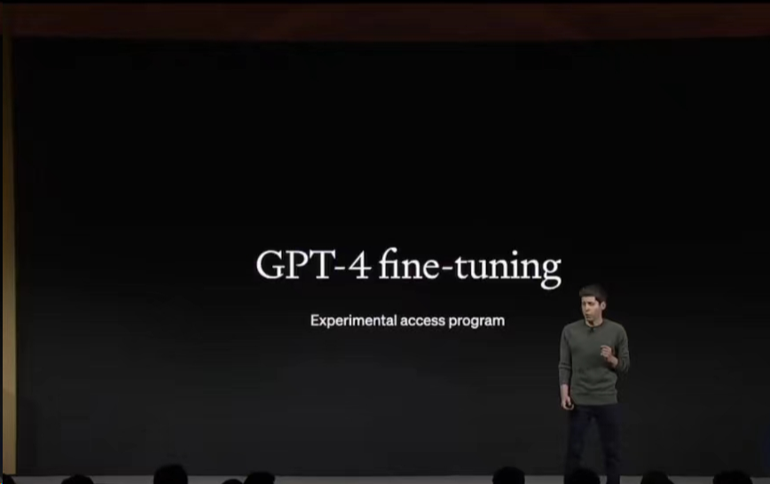 微调大模型也是开发者通常要面临的工作。Altman此次也宣布了两项有关微调的进展:GPT-3.5微调扩展到16k、GPT-4微调即将推出。同时。并表示GPT-4 微调的难度要高于GPT-3.5。