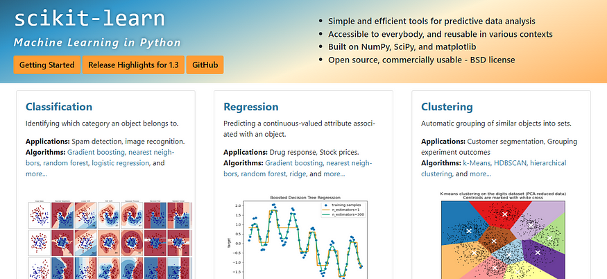 如果数据科学是一部动作电影,scikit-learn就是您的瑞士军刀 — 紧凑但功能强大。不论是分类、回归、聚类,还是想要检测垃圾邮件或预测股票市场趋势——无论您说什么,scikit-learn可能都能处理。
