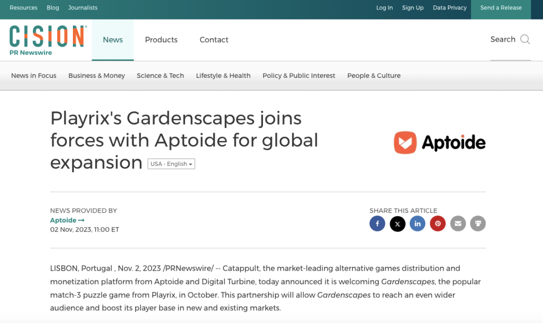 相对应的,近几年三方应用商店也形成了一股不小的势力,对 Google Play 和 App Store 共同构建的“围墙花园”发起冲击。就在上周,Playrix 便和拥有 4.3 亿用户的三方应用商店 Aptoide 合作,旗下《Gardenscapes(梦幻花园)》上架 Aptoide 全球分发推广,在 Playrix 看来,下载量过亿的游戏仍有机会在新平台上找到增量。