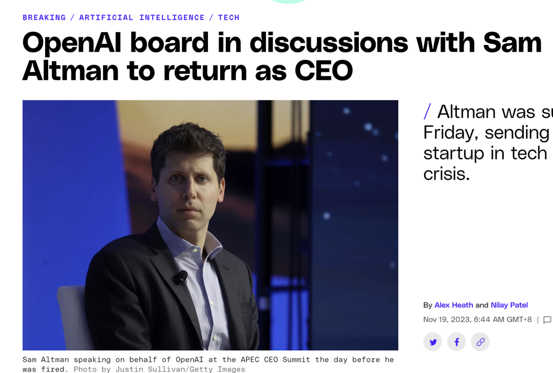想必大家昨天都被Sam Altman被董事会解雇的事情刷屏了。