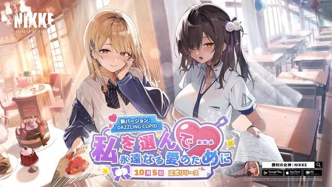10 月 5 日,《胜利女神》进行了一次大更新,顺利挤进 Top3。更新的内容包括两位 SSR 妮姬——娜嘉(辅助型)和蒂亚(防御型),全新剧情活动 DAZZLING CUPID,限定时装等。