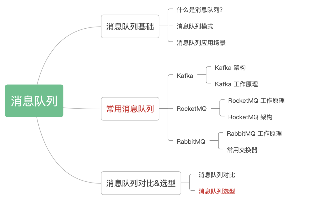由于官方社区现在对 ActiveMQ 5.x 维护越来越少,较少在大规模吞吐的场景中使用,所以我们主要讲解 Kafka、RabbitMQ 和 RocketMQ。
