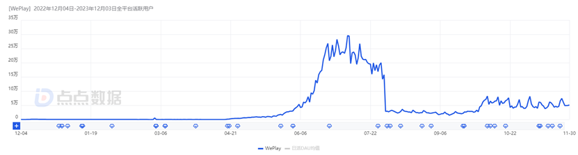 WePlay 印尼市场近一年双端 DAU|图片来源:点点数据