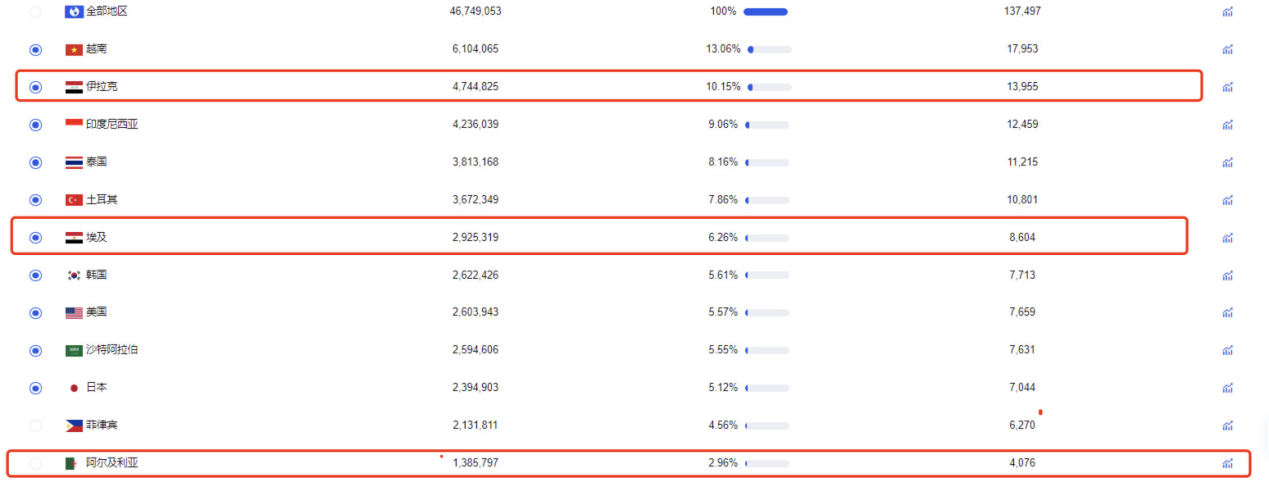 而且,仔细观察近一年 WePlay 的下载量分布,他们已经在伊拉克、埃及、阿尔及利亚等泛娱乐产业增长较快的市场进行布局,虽然还没有集中进行投入。继续走向“下沉市场”的趋势也算明确。