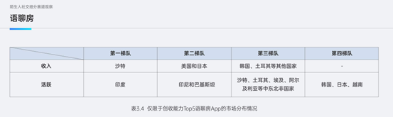 2023 年前三季度创收能力 Top5 语聊房 App 收入和 DAU 分布情况 | 图片来源:白鲸出海&网易智企《2023 泛娱乐出海白皮书》