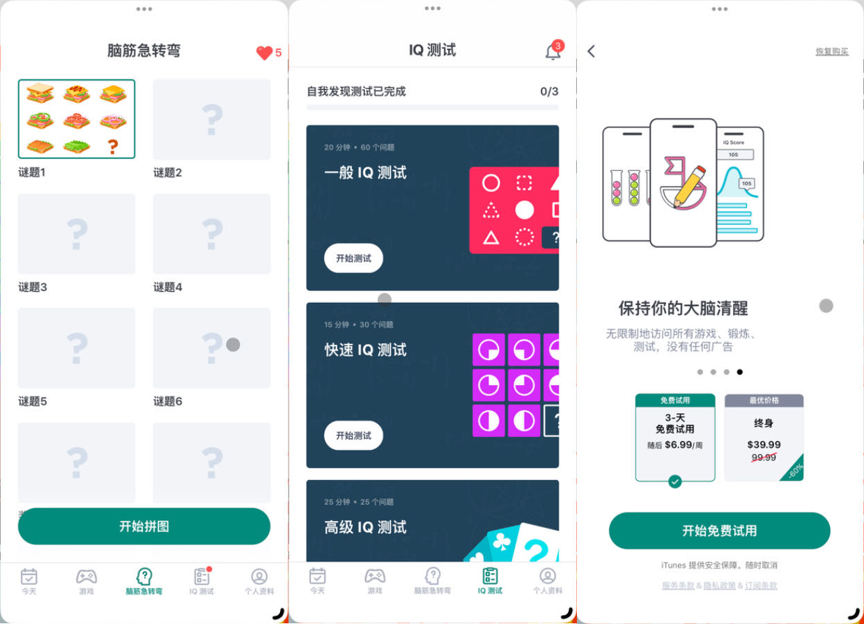 当玩家完成了每日的训练之后,应用还会提供一些包含经典玩法,比如Wordle、组词连线等小游戏、IQ测试和脑筋急转弯问题等玩法可供玩家探索。