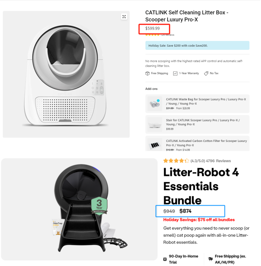 Catlink(上)与 Litter-Robot(下)功能类似产品价格区别