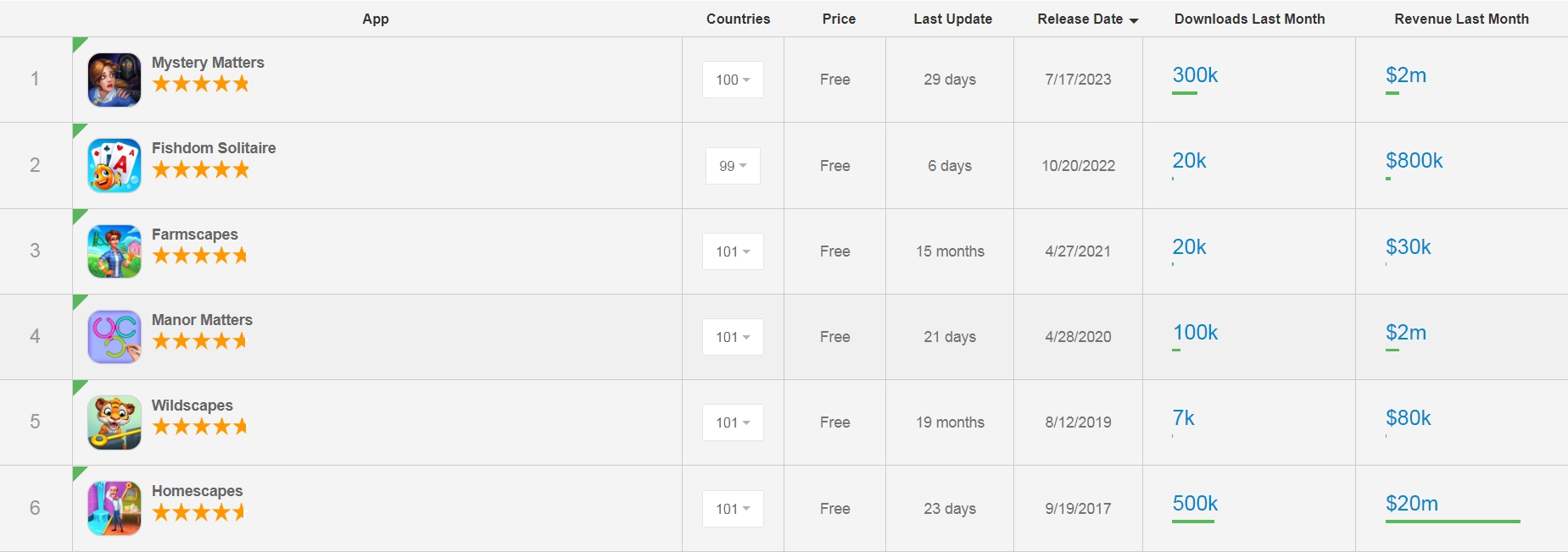 「Mystery Matters」是 Playrix 2023 年 iOS 端正式上线的唯一一款新品 | 图片来源:Sensor Tower