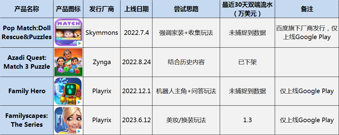 和其他几款依然处于测试阶段乃至已经下架的产品相比,月流水超过 200 万美元的「Mystery Matters」已经是最有希望的三消创新产品 |数据来源:点点数据