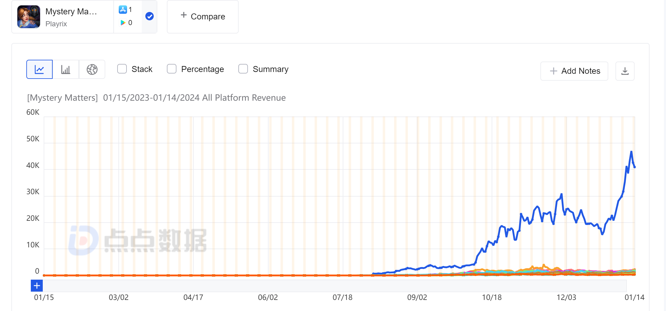 目前「Mystery Matters」的流水还在进一步走高 | 数据来源:点点数据