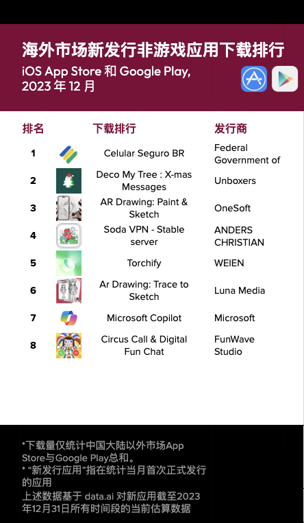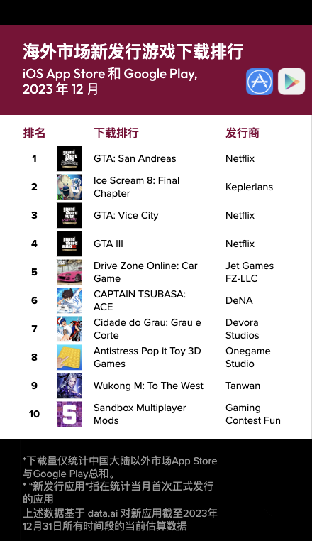 原标题:【出海榜单】2023 年 12 月海外新发行游戏与应用下载榜单