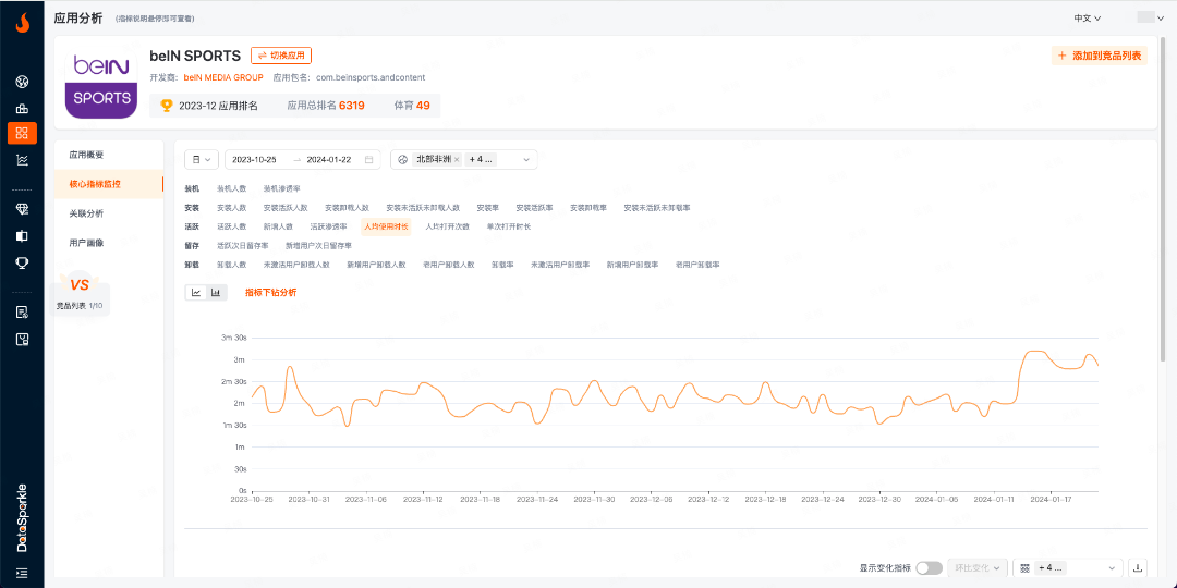 图:《beIN SPORTS》人均使用时长变化,来源:DataSparkle--AppSparkle