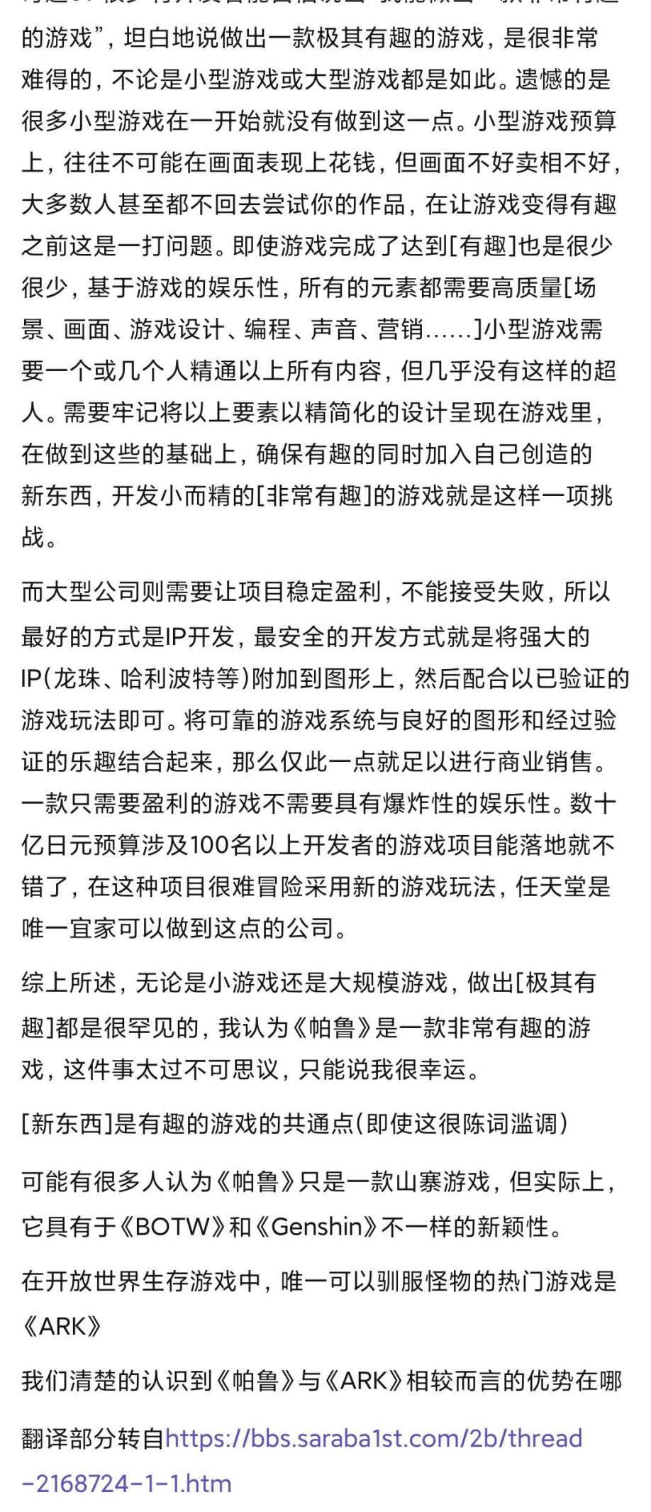在信中,他认为「Palworld」以仅有 4 人的初始团队,创造了 6 大奇迹。