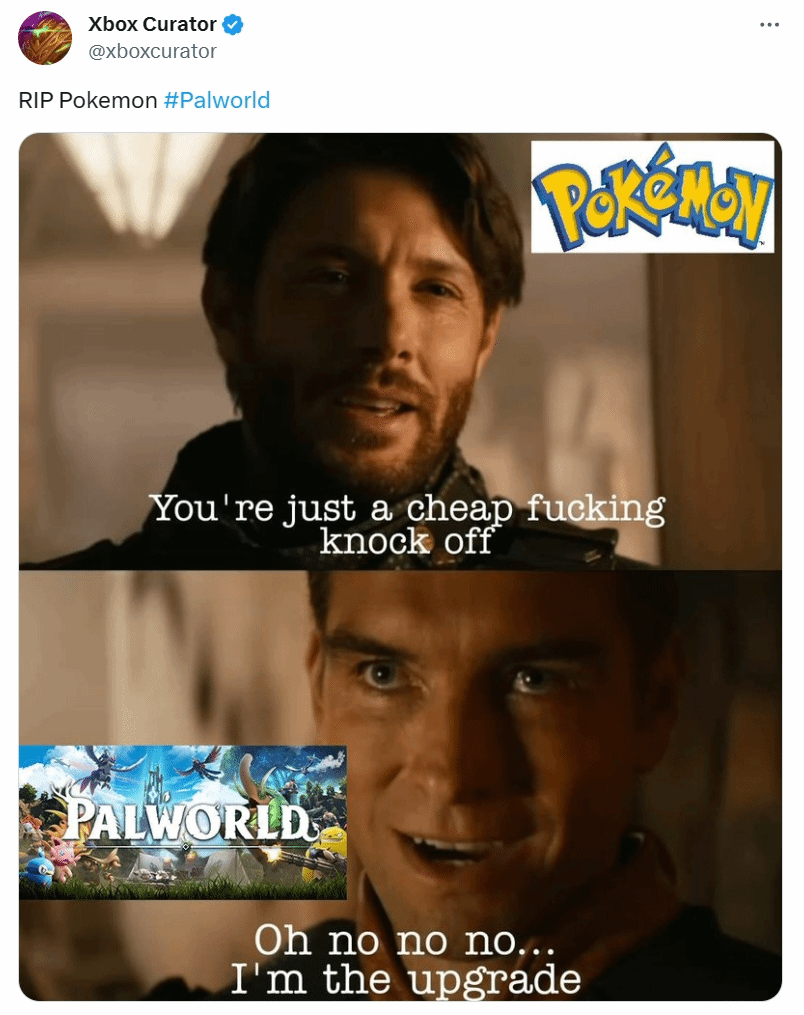 玩家社区更多把「Palworld」当成一个 Meme/梗,用来讽刺任天堂多年来的僵化陈旧、不思进取。