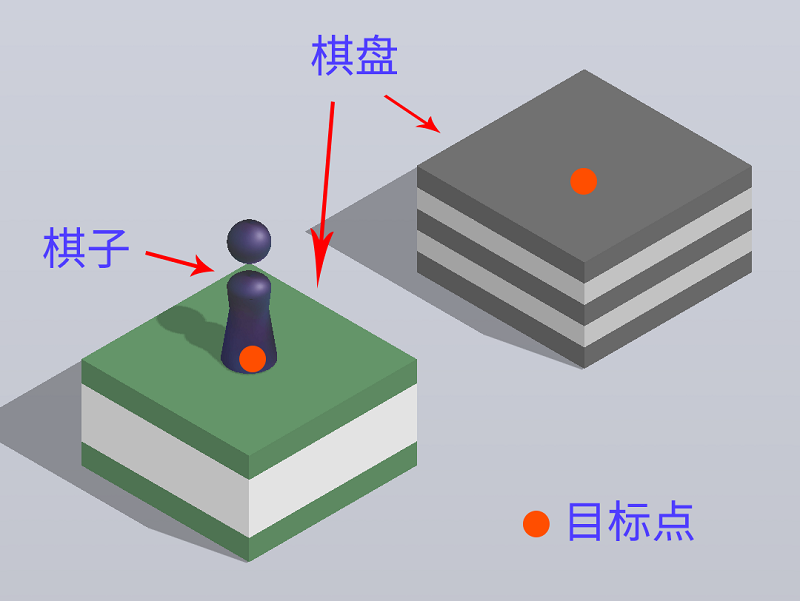 如上图所示,我们先定义了「棋子」和「棋盘」,需要找到的两个目标点用橙色点标注,首先针对棋子的目标点的判断,可以这么做: