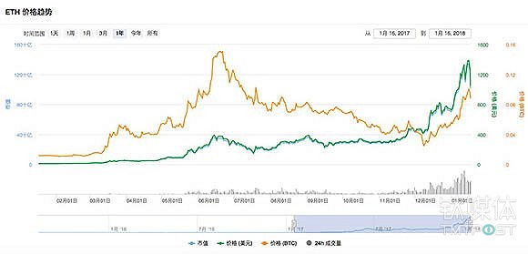 以太币2017年增长120倍