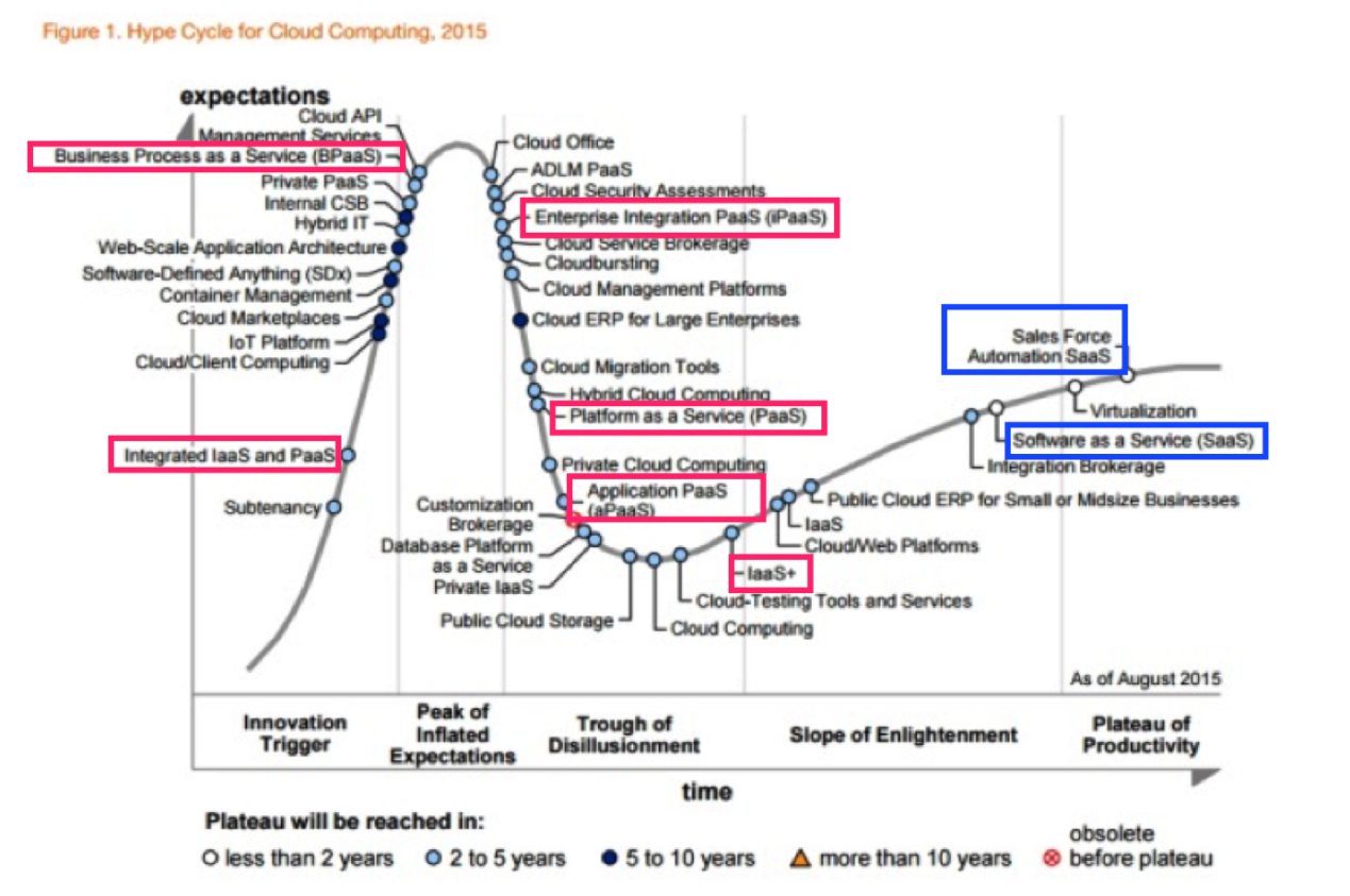 PaaS要热起来了目前,在云计算领域,IaaS和SaaS的市场规模比较大,而PaaS规模比较小,但是增长比较快。主要原因是什么?刘金柱认为,一方面PaaS有众多的细类,不管是哪一个细类,在成熟度上都落后于SaaS和IaaS,其市场发展相对滞后,发展速度也比较慢。PaaS规模在三者之中比较小有其技术技术程度者问题。另一方面,从Gartner的技术发展成熟度曲线来看,虽然PaaS有众多的细类,但是总体上说,在全球云计算技术发展的成熟度上,PaaS也是刚刚到达快速发展期的顶端,基础理论基本成熟,即将进入产业化规模的爬坡期阶段。从市场的需求来看,用户对云计算的应用的发展将进入爆发期,企业上云,就得有在云上跑的应用。因此,PaaS增长比较快是值得预期的。刘金柱认为,从全球范围来看,PaaS市场都要热起来了。