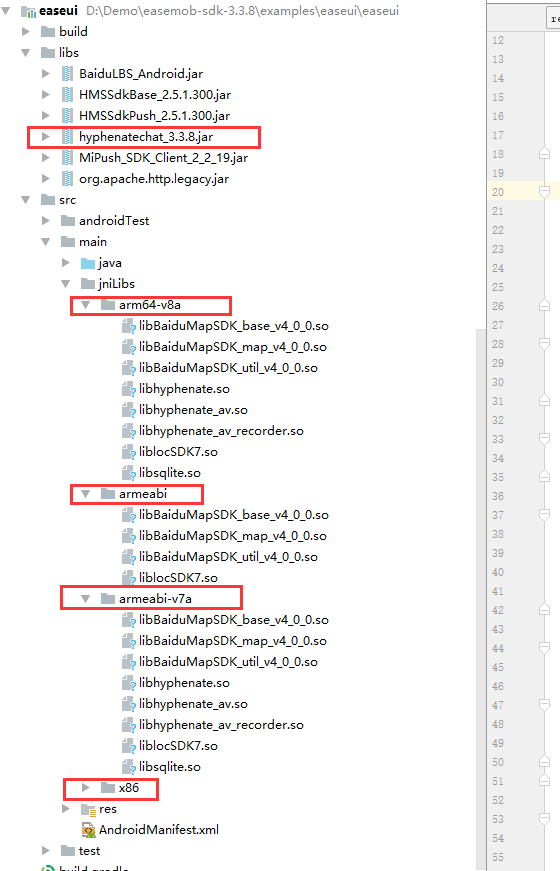 很多用户是不知道sdk是包含哪些文件的,sdk是有jar包和so包组成,其中jar包命名hyphenatechat_3.3.8.jar