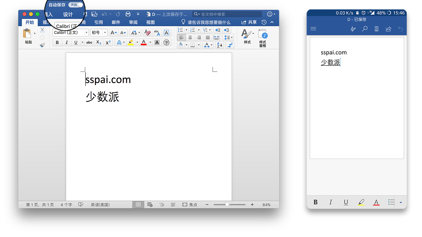午饭过后,倦意袭来。写论文之前先睡一下午才是一个热爱学术的年轻人应该做的(实际上是下午要给老师检查)。但电脑还放在办公室,所以我打开手机上的 Word。Office 365 订阅下才有的「自动保存」功能,不仅免除了我忘记保存的烦恼,还让我能够在不同的设备里继续之前的任务。编辑动作基本上能实时展现在所有设备下,高效利用时间将内容写完,再去电脑上修改格式即可。