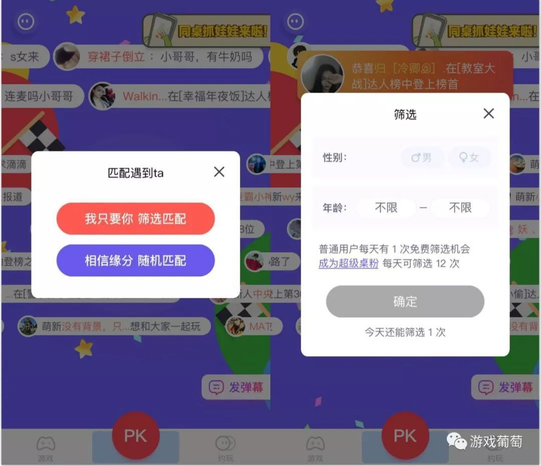 同桌游戏的匹配筛选