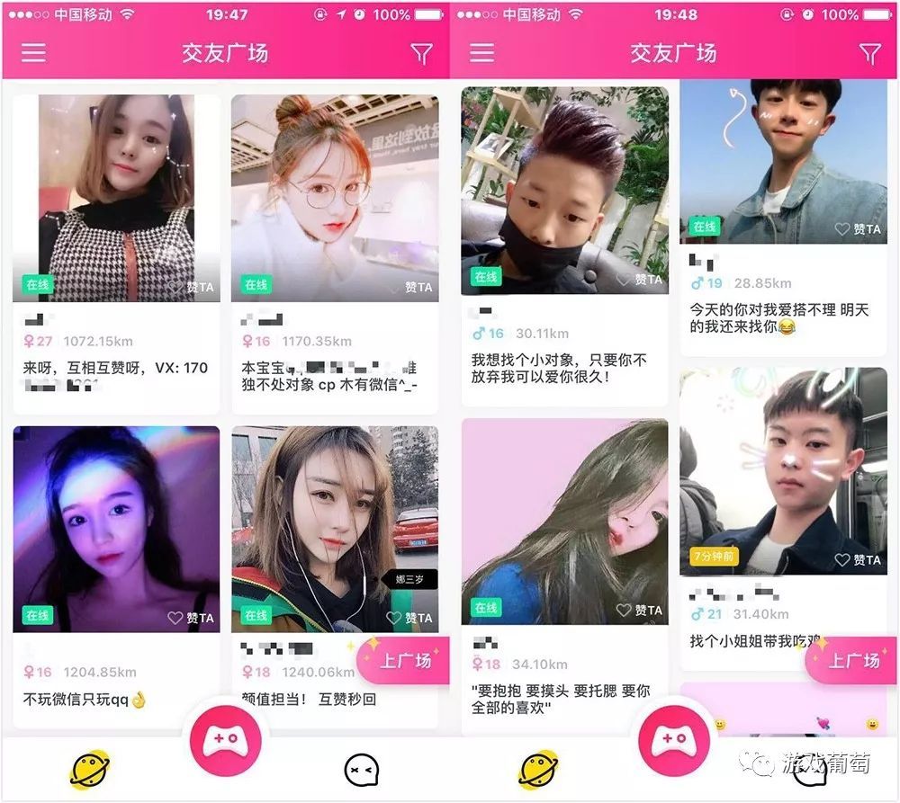 开心斗的广场是一个简单的信息平台,由用户自己发布社交需求。在这上面你能看到:有的人单纯想找一起玩游戏的人、有的人求交友/互赞,也有直白地说要找网恋对象的。