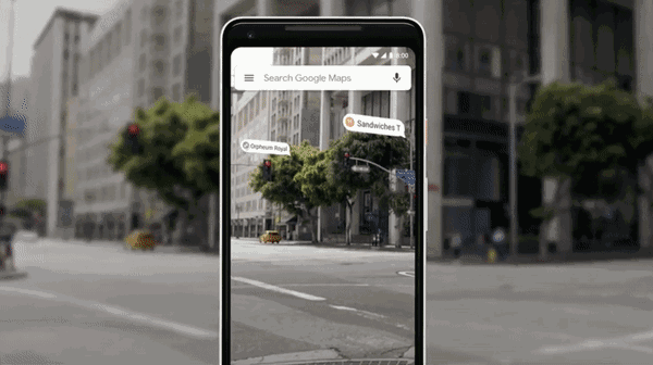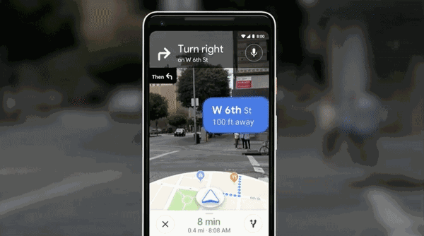 直接与Google街景结合,打通虚拟和现实,堪称路痴福利,把AR应用到了相机中,打开相机,就能AR指方向——你妈再也不用担心你走错了。