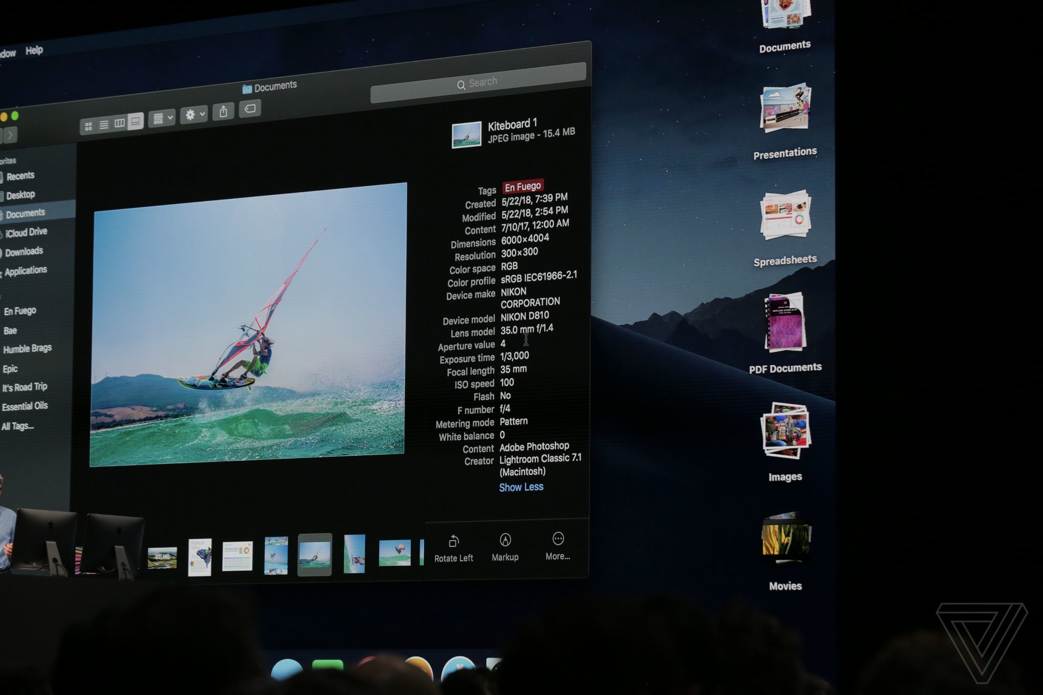 (3)Finder“访达”新增文件浏览模式,文件详情可以显示在右侧,并且加入了一些快捷操作功能,比如旋转照片。