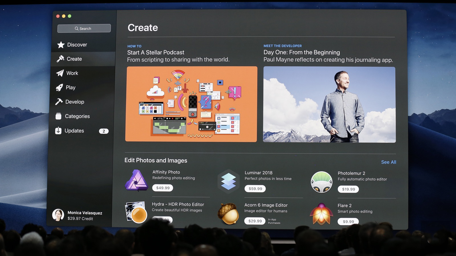(8)macOS应用商店采用了新的设计,左侧有一个侧栏,有关于应用的故事,视频预览也会显示应用的排名,并提供更多热门的评论。此外微软的Office 365以及Adobe Creative Cloud软件将入驻全新的Mac App Store。