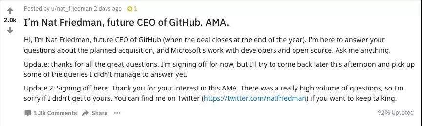为了进一步与社区开发者进行交流,近日,Friedman在美国社交平台Reddit的“Ask MeAnything”(AMA)上回答了网友关于收购的问题。
