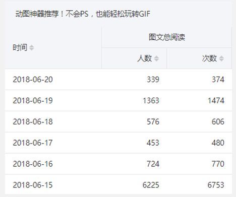 比如上周五中午,运营社发布了一篇文章《动图神器推荐!不会PS,也能轻松玩转GIF》。发布当天,阅读量是 6K+,第二天是 7K+,现在阅读量已经达到 9K+。这就是长尾阅读流量,当天虽然能获得最大的阅读量,但是之后几天也能获得不错的阅读量。