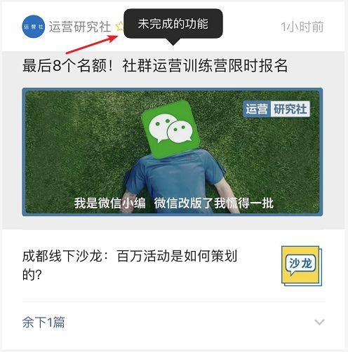 改版后的微信,公众号只会显示两篇图文,后面的文章都会被折叠,建议每次图文发送不要超过 2 篇文章。所以,小编们应该投入更多的时间和精力去写前两篇文章,输出优质的原创内容。