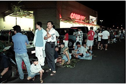 ▲ 在 CompUSA 外彻夜排队的消费者 图片来自:Editorial Archives