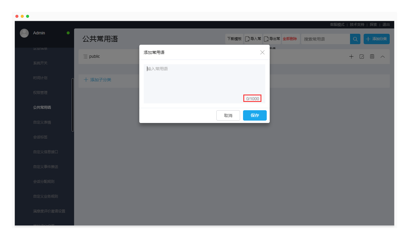 【优化】公共常用语新增及导入字符数限制统一为1000