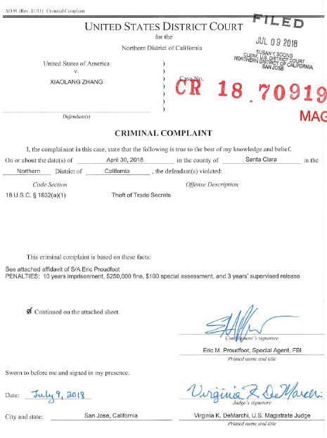 根据向加利福尼亚州北区法院提交的文件,美国联邦调查局本周指控一名已离职的苹果公司工程师Xiaolang Zhang(英译:张小浪)窃取商业机密,且他们已于当地时间 7 月 7 日在机场逮捕了这名正准备加入到中国一家无人驾驶创业公司 XMotors(小鹏汽车) 的前苹果公司工程师。