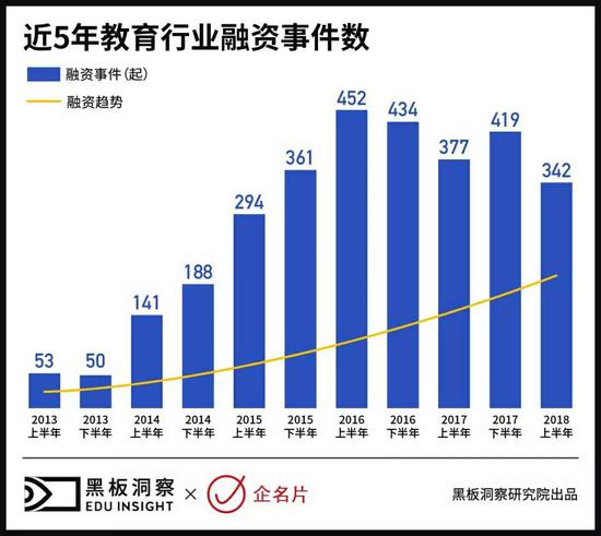 而另一面,前段时间VC被贴上了“钱荒”的标签,真正的凛冬是不是要来了?教育行业是否又要经历一段“至暗时刻”?黑板洞察联合企名片,通过梳理近几年教育行业的投融资数据,试图找出一个答案。