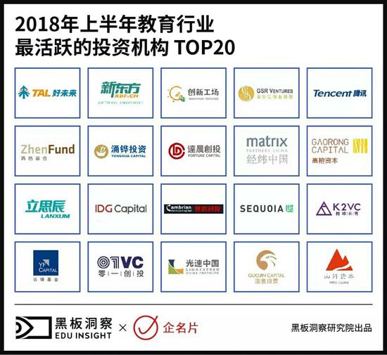 这20家机构投资事件数量占18年上半年总数量的28%,教育公司的战略投资比较抢眼,除了新东方和好未来依旧强势以外,立思辰也榜上有名,出手频率相对较高,他们都通过投资布局逐渐形成了各自的教育生态。另外我们也能看到,教育行业是创新工场非常看重的赛道。