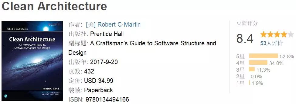 不得不说Bob叔写的书真的很棒,我已经读完了他的《代码整洁之道》,这本书主要讲述了如何构建干净的架构,它可以让你了解到软件架构师需要做什么,以及实现它的核心理念是什么,这本书对于软件架构师、系统分析师、系统设计师和软件管理人员来说都是必不可少的一本书