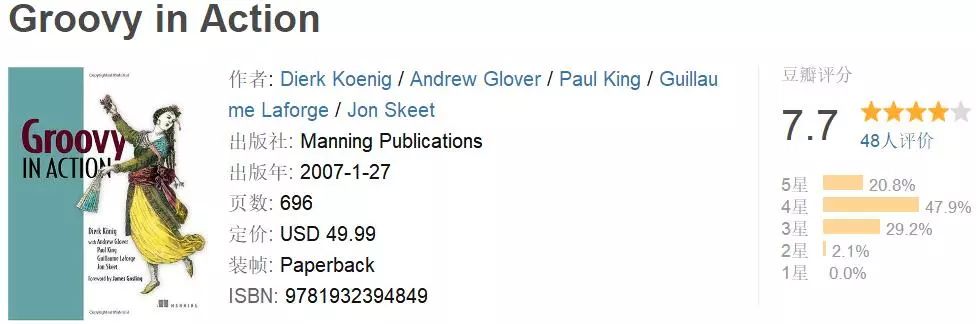 这是我在2017年阅读Groovy 的第二本书。虽然《Make Java Groovy》作为入门的书籍是非常不错的选择,但它并不全面,一旦你学习了Groovy的基础知识并编写了几个Groovy脚本,你就需要学习更高级的内容,而这本书就是你所需要的