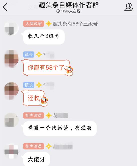 “收几个3级号”一位群友称,而他在群里的账号名字,是“趣头条有58个3级号”。一个群友惊讶:你都有58个了,还收?另一个群友则在自顾自的询问有没有人代运营。