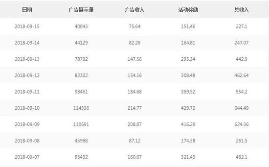 金蛋到底价值几何,又如何计算的呢?从一位群友晒的后台数据可看出端倪。数据显示9月7日他的账号广告展示量约为8.5万,由此产生的广告收入是160元,再加上321元的(平台)活动奖励金,他当日的收入是482元。
