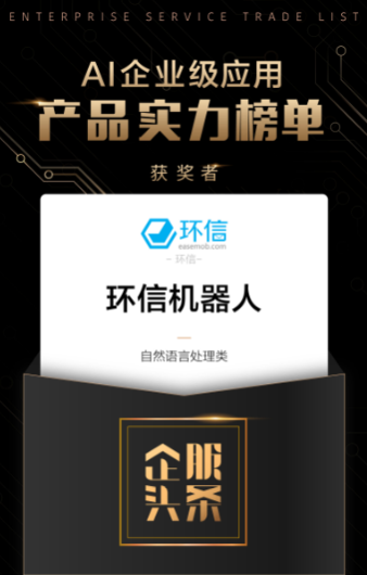 近日,由企服行业头条组织筹办的《AI企业级应用产品实力榜单》正式对外发榜,从众多候选的产品中,经过层层筛选及评审打分,“环信机器人”凭借强大的中文语义计算平台,深厚的AI技术沉淀以及在保险、航空、物流、教育等领域的大规模落地深耕领跑NLP客服领域。