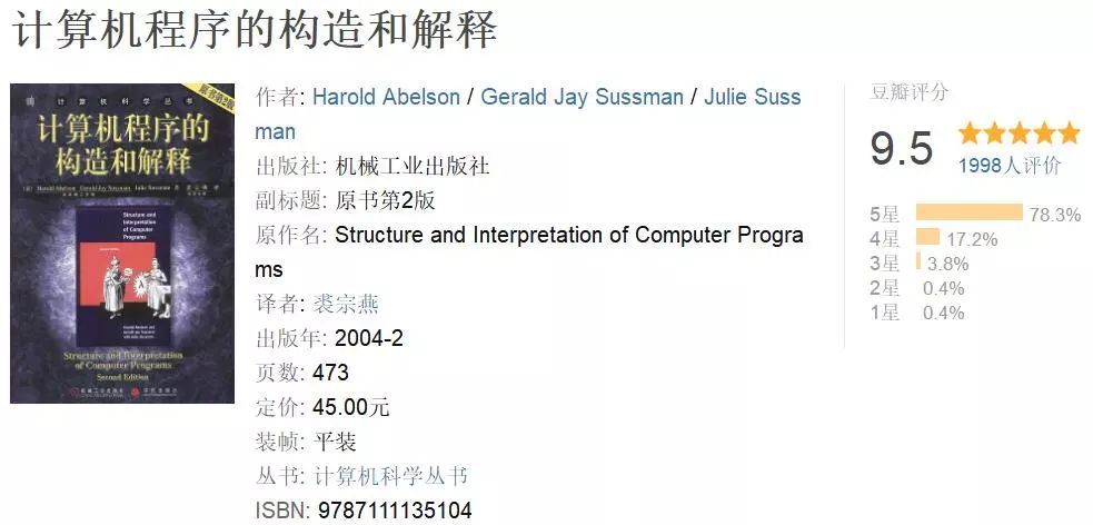 相信只要是程序员都对《计算机程序的构造和解释》这本书都不陌生,出版几十年来,本书一直对计算机科学的教育计划有着深刻的影响,在豆瓣、亚马逊的评分也一直居高不下。