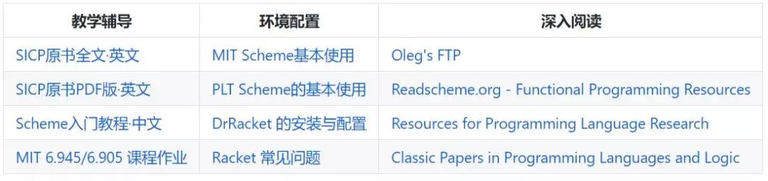 除此之外,译者们还收集了一些有用的学习资料,包括SICP原书、Scheme新手教程、教学环境搭建、相关拓展习题等资料。