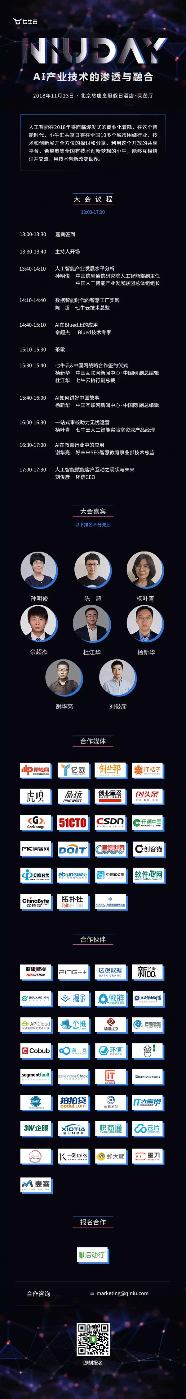 11月23日,一场由七牛云主办主题为「AI产业技术的渗透与融合」的NIUDAY小牛汇共享日将在北京举行。会上,将邀请众多行业内知名企业及技术专家,针对当前AI在技术上以及行业中遇到的一些壁垒问题,进行深入探讨和分享。