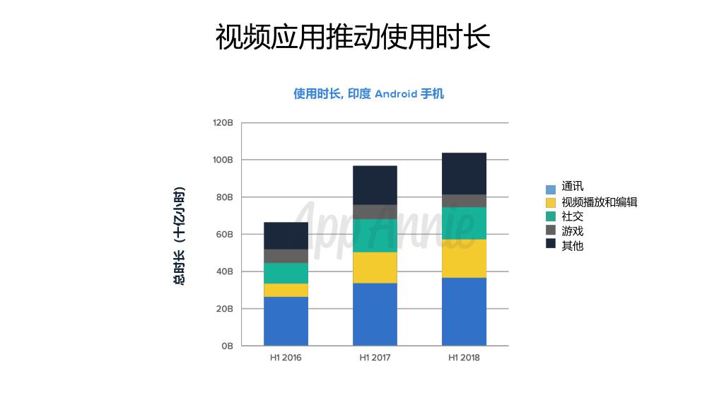 印度市场的盈利潜力也在上半年得到了充分的体现。上半年,印度 Google Play 用户支出已经超过iOS,而且各个类别均呈现出显著增长。娱乐类 App 的收入同比增长高达126%,社交类 App 的收入同比增长达64%,生活类 App 收入增长也达到了 109%。从用户使用时长和数据流量消耗来看,视频类应用占据了移动生活中相当重要的一部分。