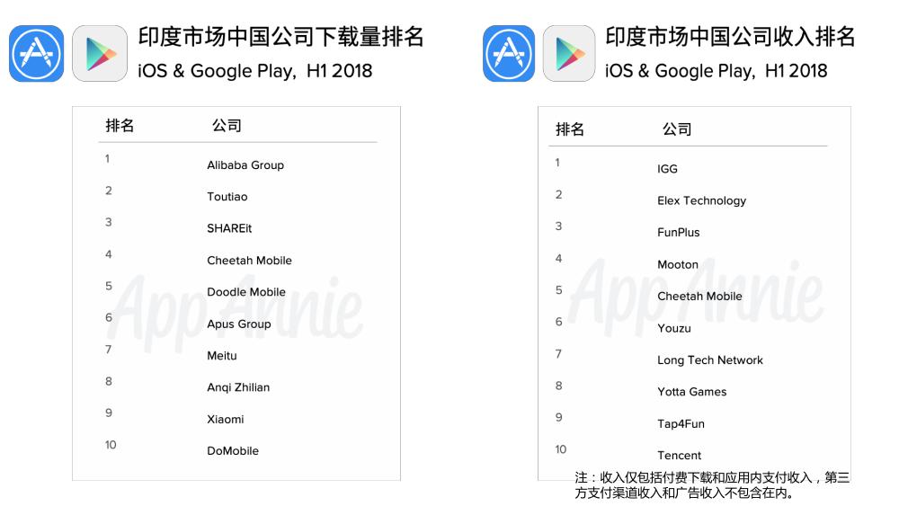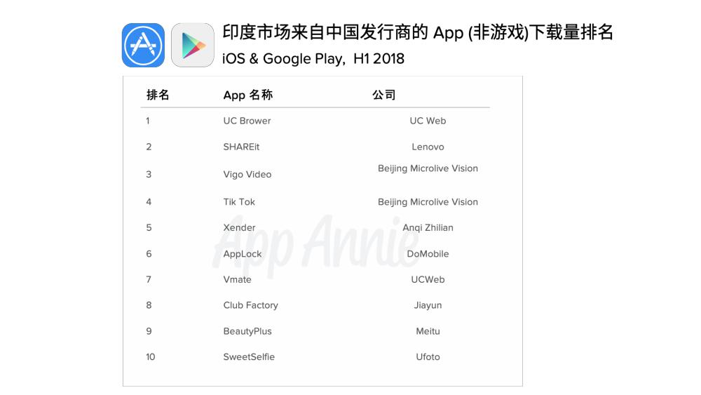 中国发行商在印度保持了活跃、阿里巴巴旗下的 UC、头条位列中国发行商在印度市场下载量前两位,SHAREit、猎豹移动、涂鸦移动、美图、闪传、小米和 DoMobile 跻身下载前十位。