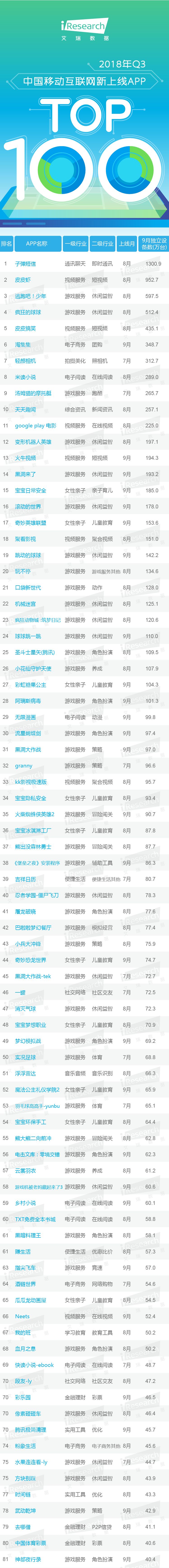 2018年Q3中国移动互联网新势力