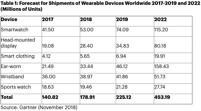 与此同时,Gartner 预测:到 2022 年,苹果 AirPods 之类的耳机设备,将占可穿戴设备市场份额的 30% 以上。