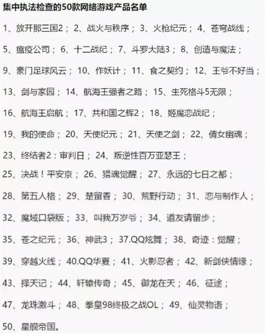 同时,对已经上线的游戏,有关部门也进行了多次的清理核查。