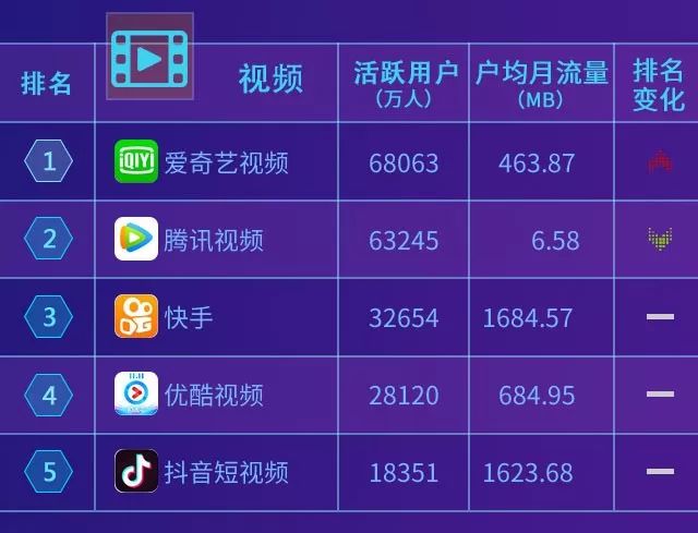 精品竖屏内容为爱奇艺带来了较好的市场反馈,在本月榜单中我们可以看到,爱奇艺视频已经超越腾讯视频晋升总榜第三名,月活环比增长69%。